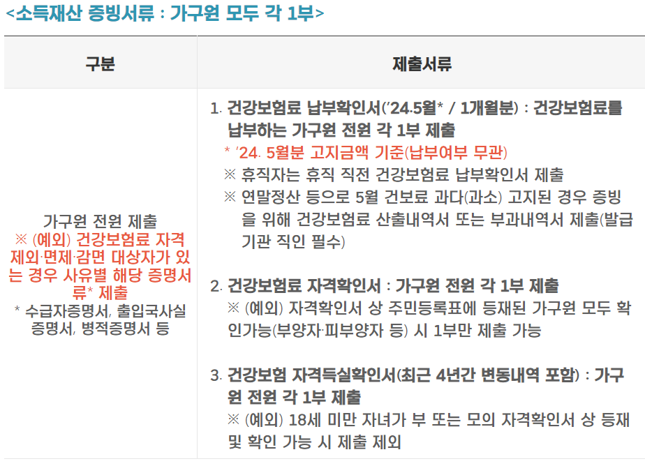 3. 소득 : 2024년 5월 건강보험료를 기준으로 소득기준 중위120% 이하인 자